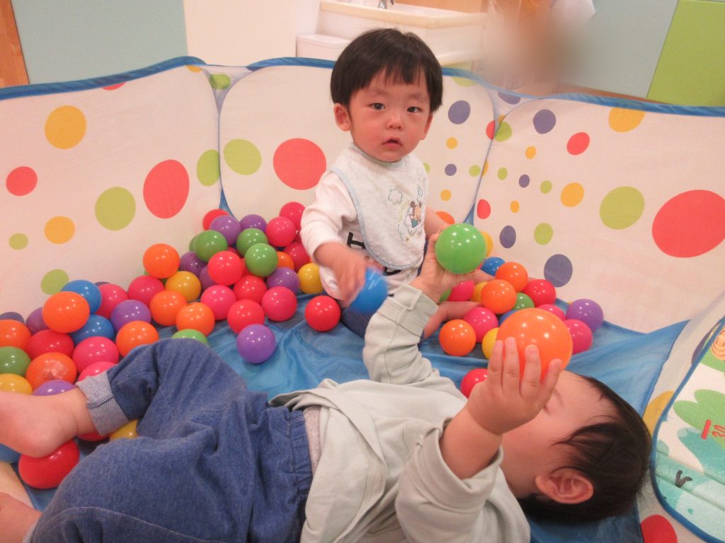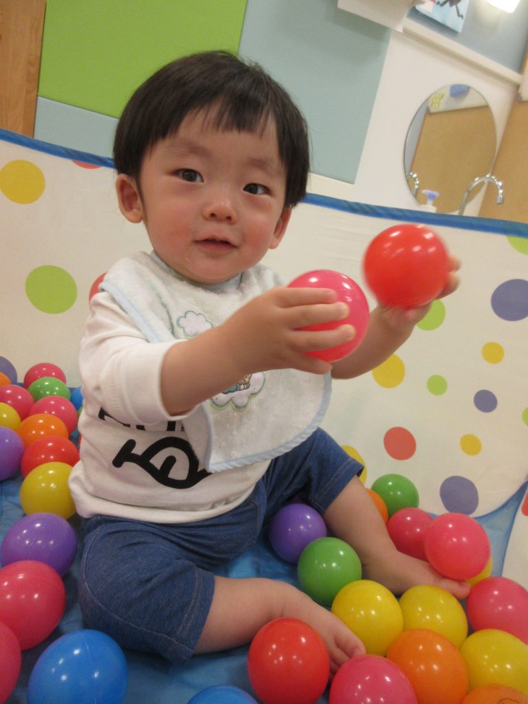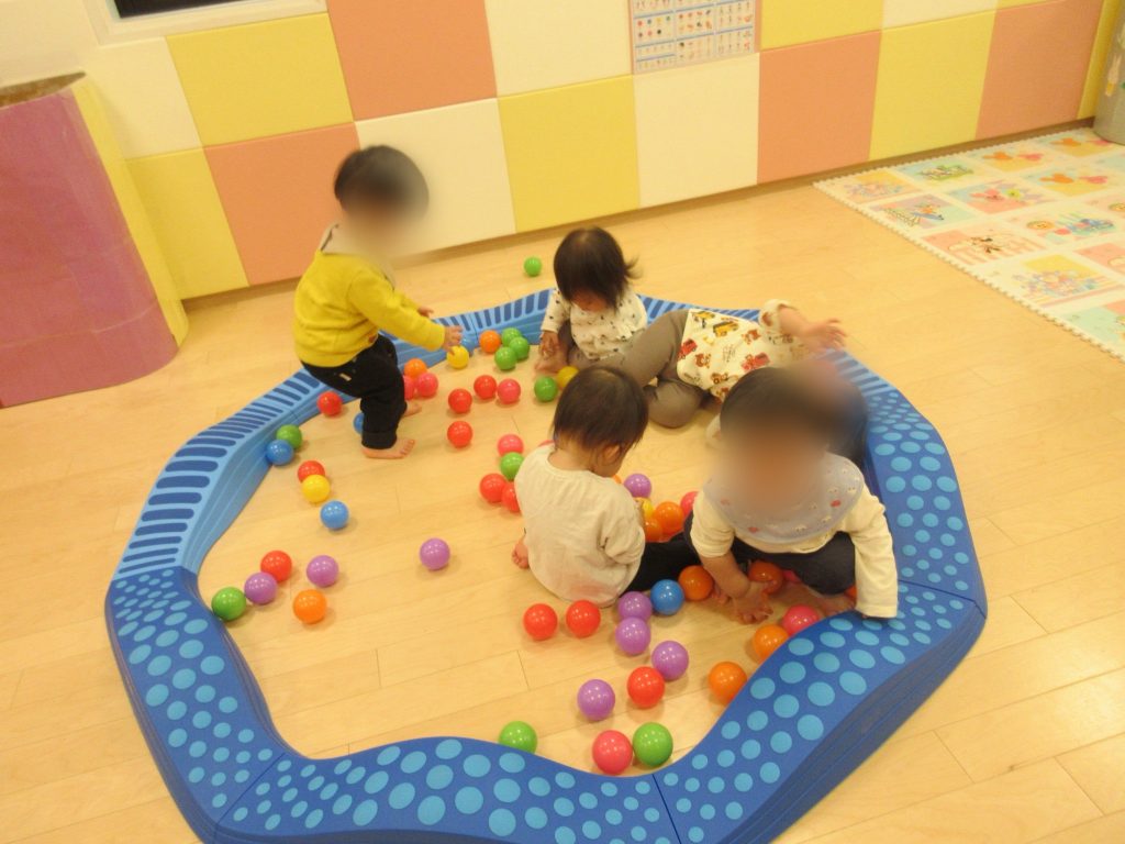 ボールプールなども楽しみ、お部屋の中でも元気いっぱいないちごぐみさんです