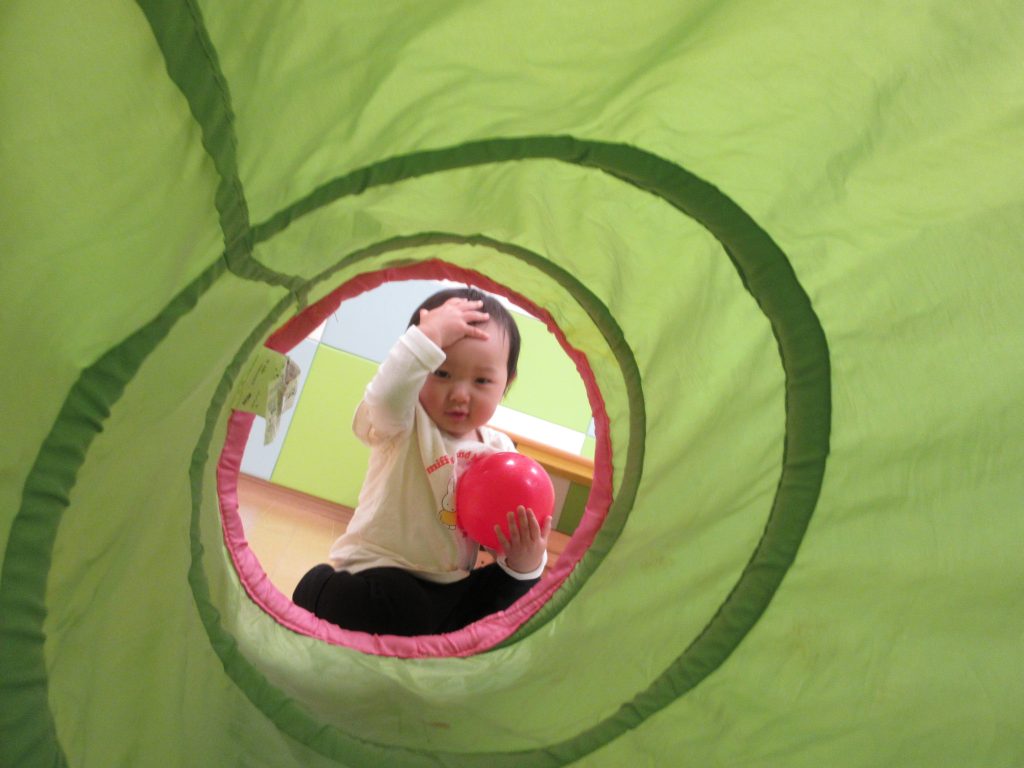 ↓ハイハイができるようになり、頑張ってトンネルの中を進んだり、