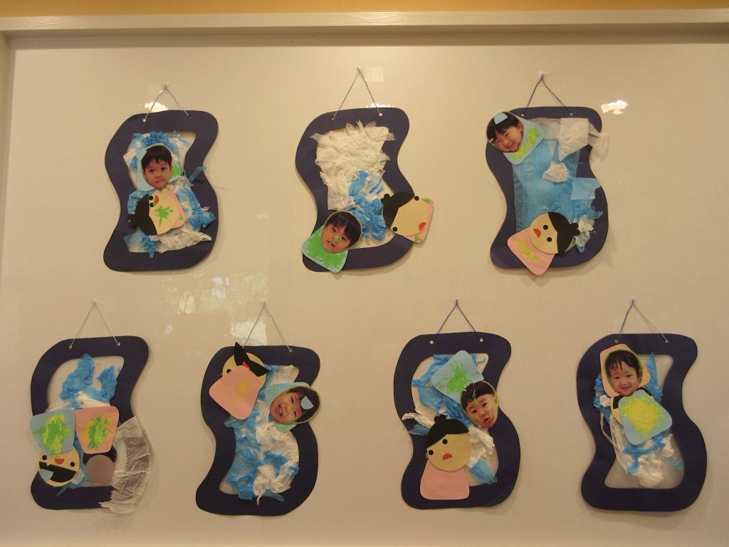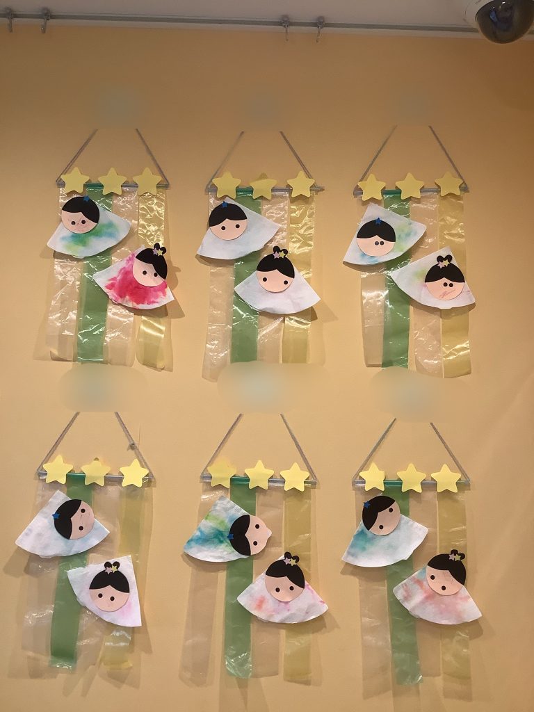 彦星様や織姫様のお顔はシールや子どもたちのお顔の写真をつけてもらい、お洋服は両面テープで貼りました![]()