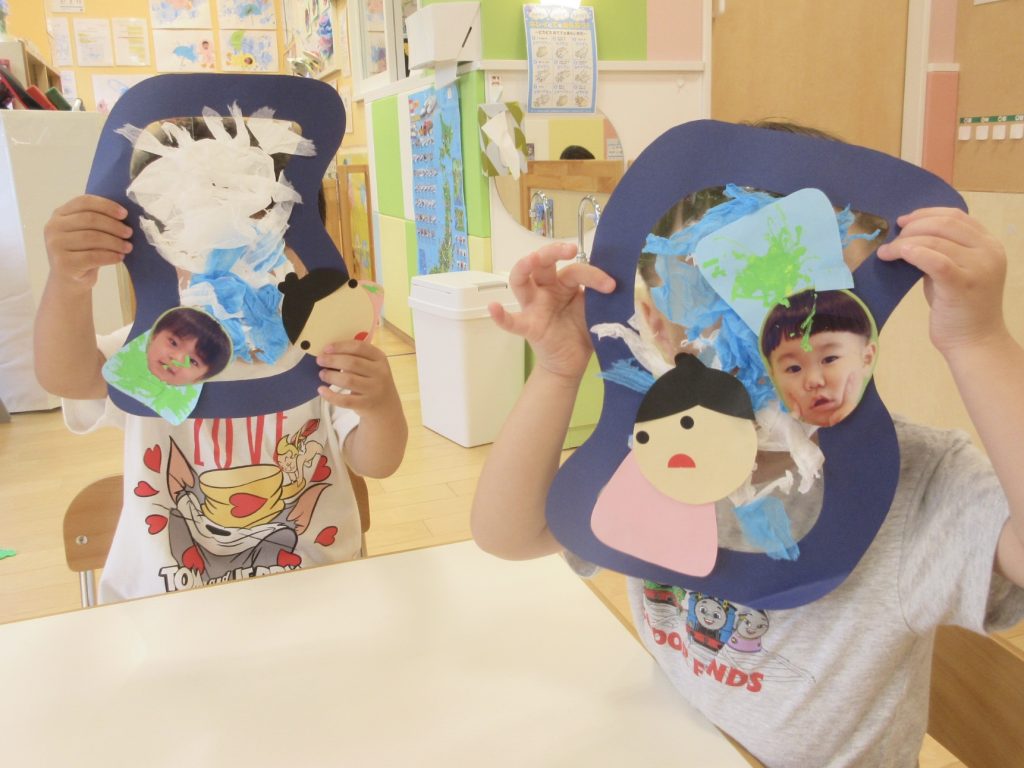「たてにはったよ〜!」「くしゃくしゃにしたの〜!」とこだわったポイントを教えてくれる姿がありましたよ!