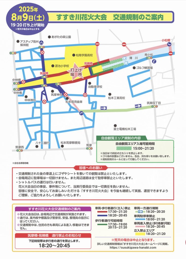 今年のすすき川花火大会は、『地域の皆さんに元気と活力を提供する』をテーマに、約3000発の花火が松本の夜空を彩ります🎆