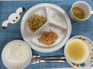 【1.2歳児食】エネルギー457kcal たんぱく質19.2g 脂質15.9g