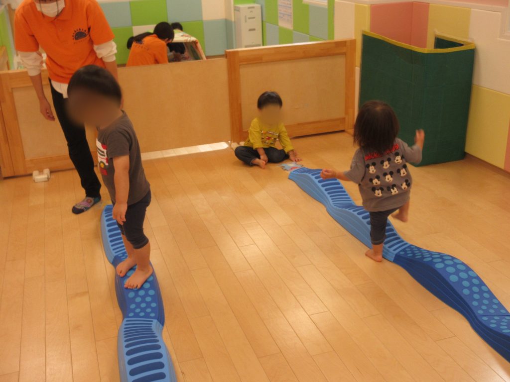 「バランス」を取りながら平均台の上を歩いて身体を動かしていました!