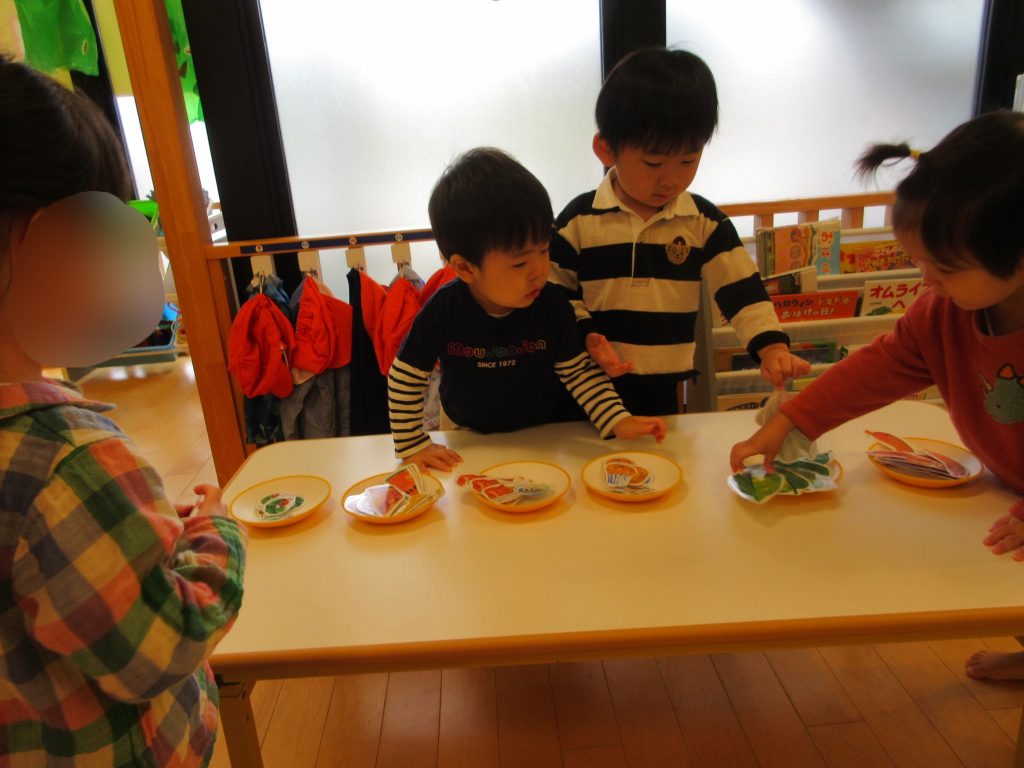 お菓子や果物を自由に選び貼ってもらいました![]()
