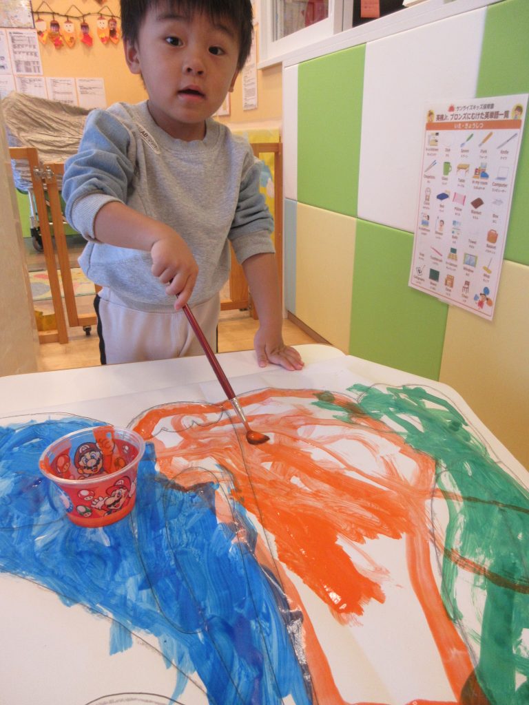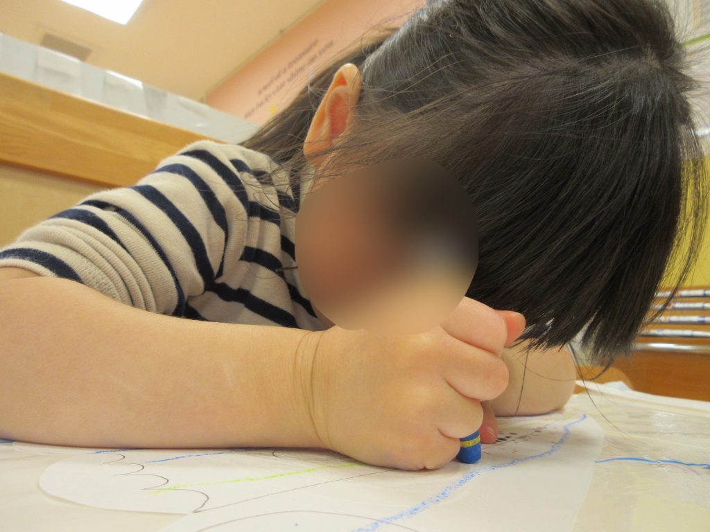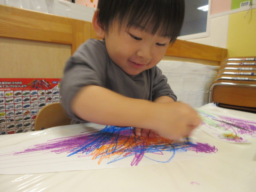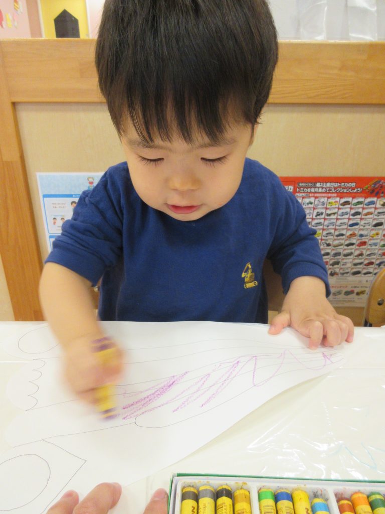 まずはその蝶の羽をそれぞれクレヨンで塗ってもらいました