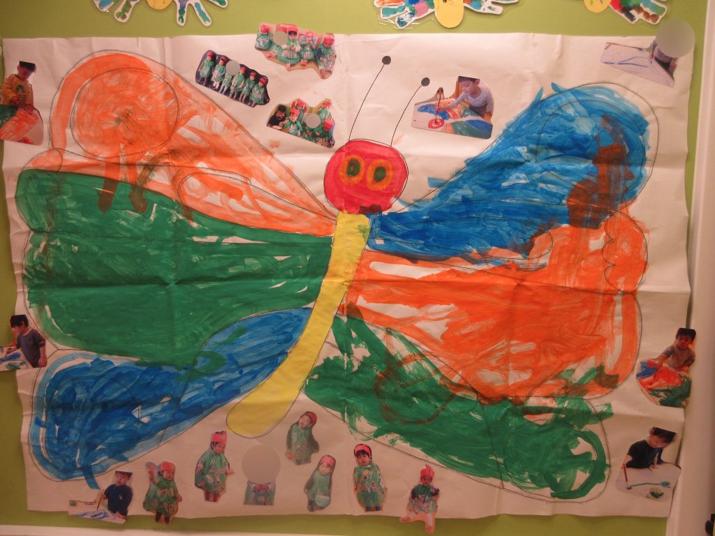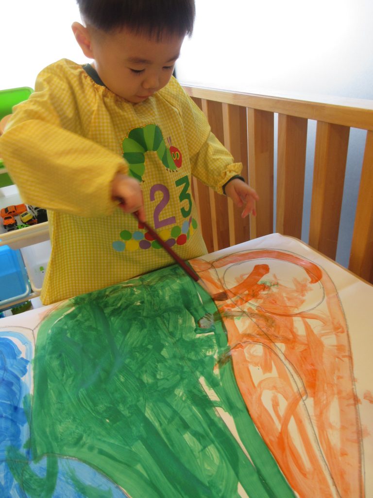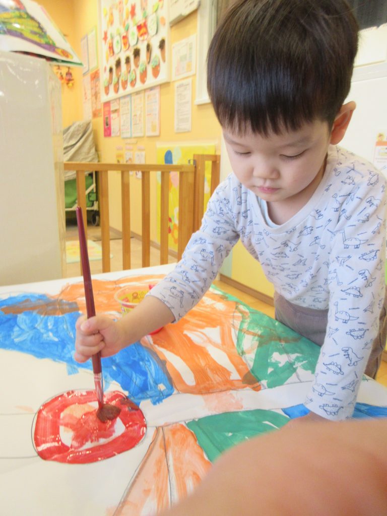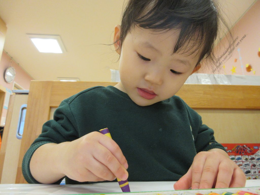 まずはその蝶の羽をそれぞれクレヨンで塗ってもらいました