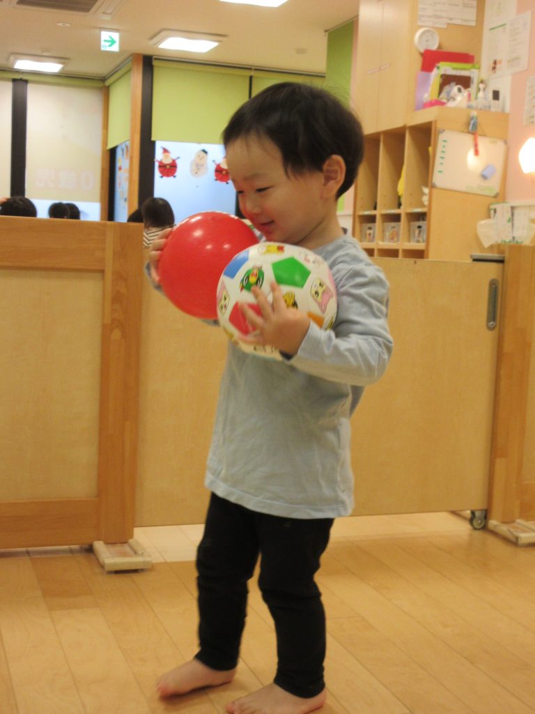 ボールを沢山手に抱えてみよう!!
