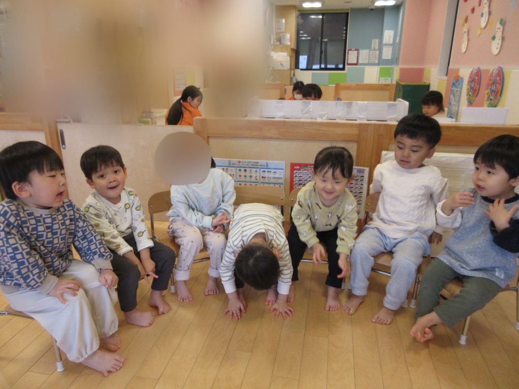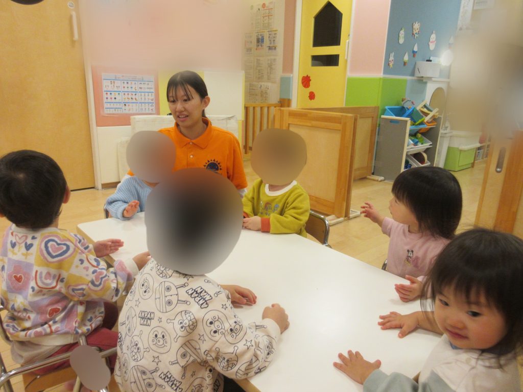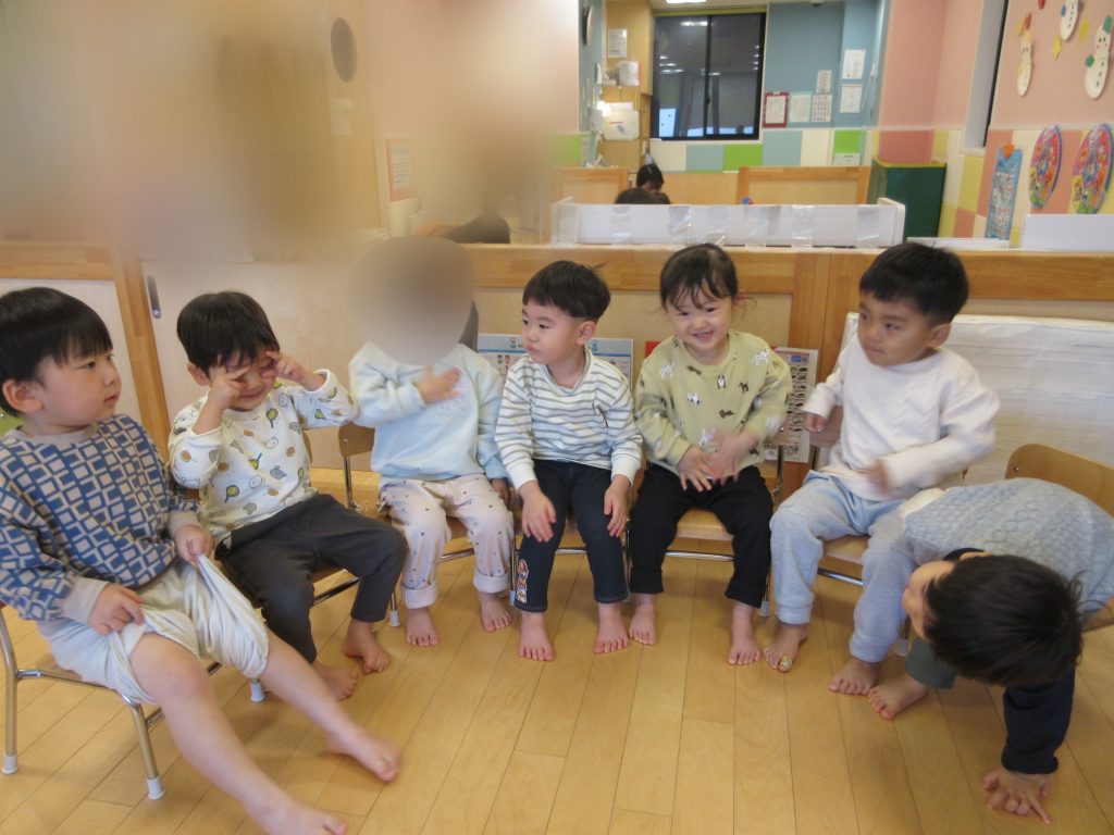 いちご組さんでは、椅子に座って英語カリキュラムに参加してみました![]()