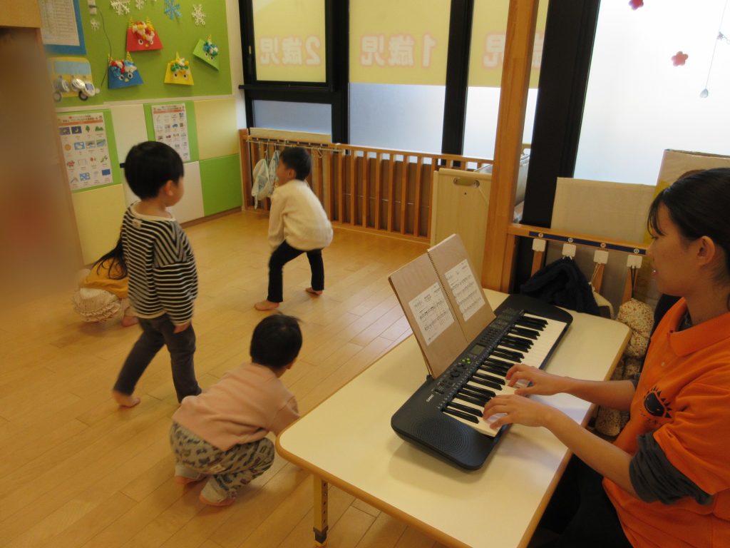 先生が弾く今月の歌「ゆき」に合わせてノリノリで身体を動かしています