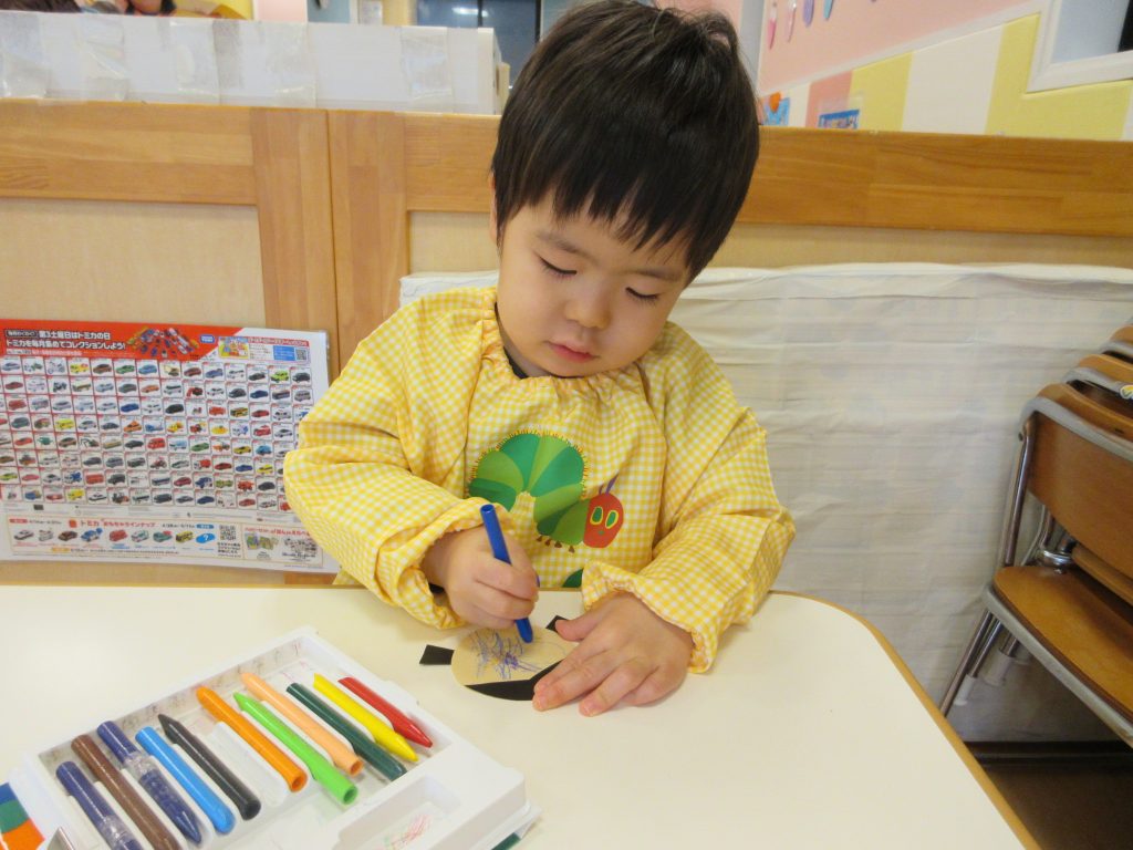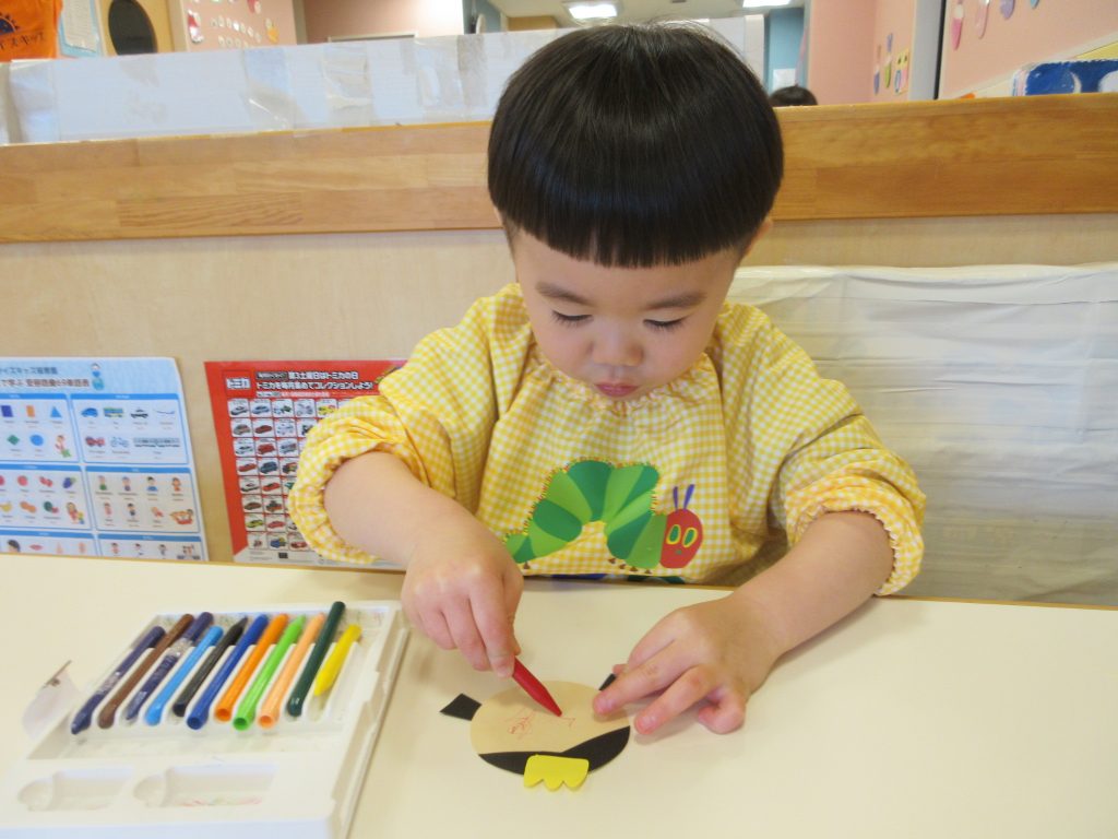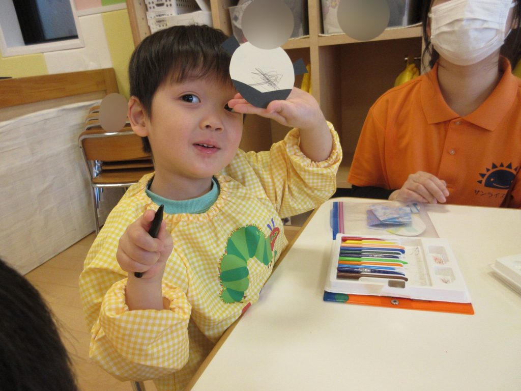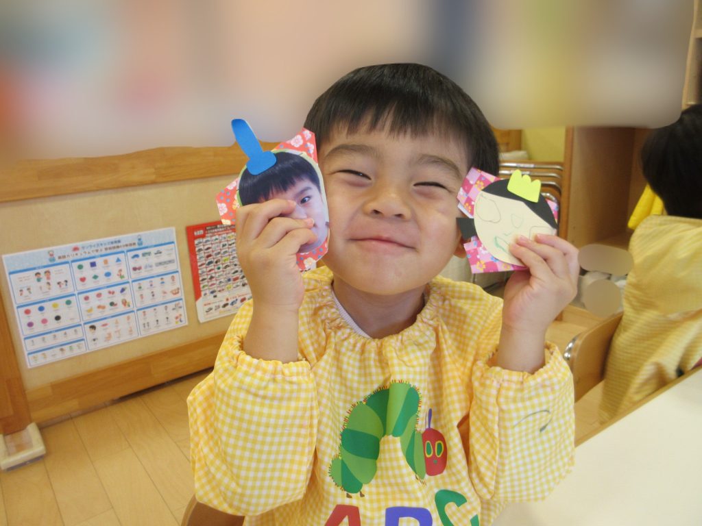 お雛様・お内裏様にクーピーでお顔を描いてもらうと、カラフルに色をつける子や「ここがめで〜こっちはくち!」と顔のパーツをバッチリ捉えて描く子もいましたよ![]()