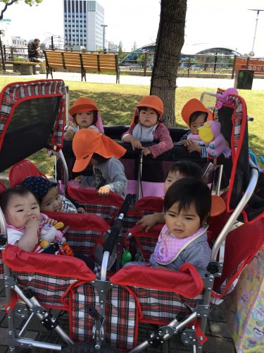 緑が多く、子供たちを遊びに連れていきたいと思う公園が園の近くにはとても多くあります今日は『ガーデンふ頭』で遊びました