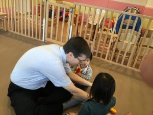 サンライズキッズ名古屋港園では毎週水曜日に 「英語であそぼう!」とアメリカ人のジョーダン先生を迎えて...