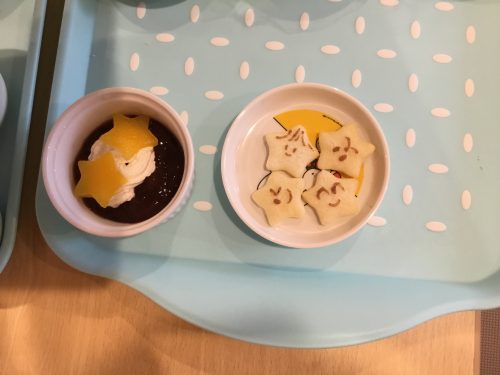 おやつは「お星さまゼリー」と「かわいいお顔がついた、おせんべい」