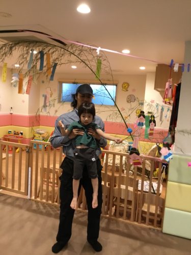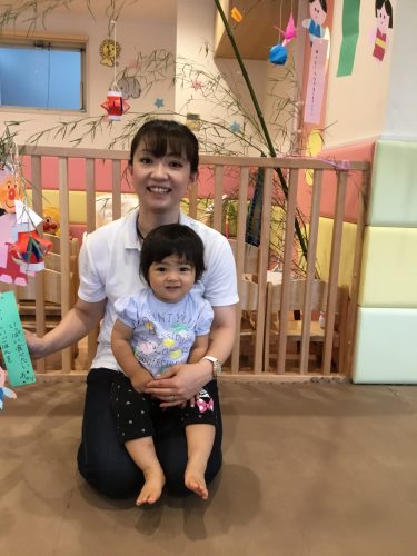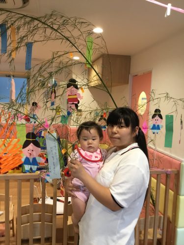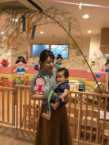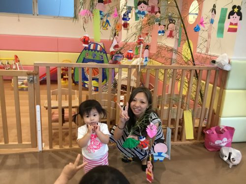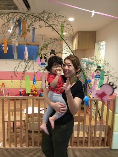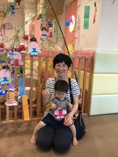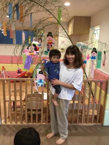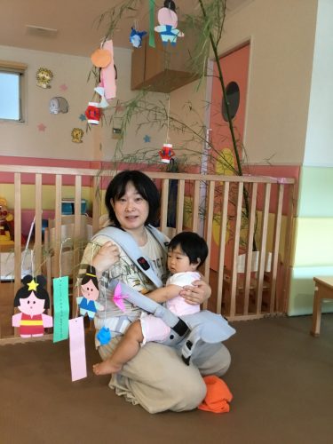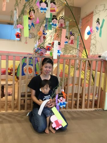 先生が見せてくれたペープサートの「ひこ星様と織姫様」を見ていた時、仲良く遊ぶ織姫と彦星を見てウキウキ笑っている2才児!