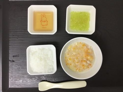 離乳食は「おかゆ」「クリームシチュー」「きゅうりのやわらか煮」です