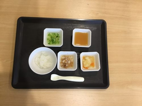 2018.08.07|給食ピックアップ 8月7日のお給食です 今日のお給食は「白身の竜田揚げ」「ポテトサラダ」「スティックきゅうり」「玉ねぎのみそ汁」「ごはん」です 離乳食は「おかゆ」「みそ汁」「ジャガイモと人参のだし煮」「きゅうり」「白身魚煮」です 前へ 次へ