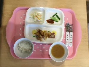 今日のお給食は「白身の竜田揚げ」「ポテトサラダ」「スティックきゅうり」「玉ねぎのみそ汁」「ごはん」で...