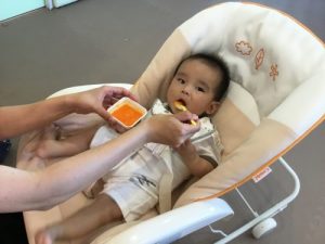 今日のお給食は「ご飯」「チキンのハヤシシチュー」「インゲンのサラダ」「チーズ」です 離乳食は「おかゆ...