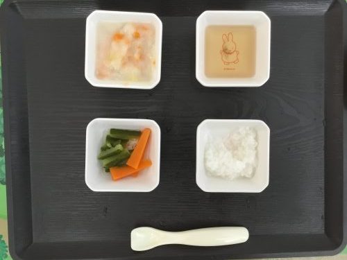離乳食は「シチュー」「軟飯」「人参スティック」「きゅうり人参スティック」です
