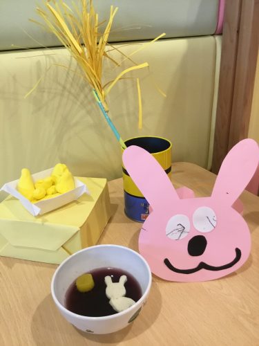 その後はお月見さんを見上げるウサギさんのゼリーをおやつでいただきました。