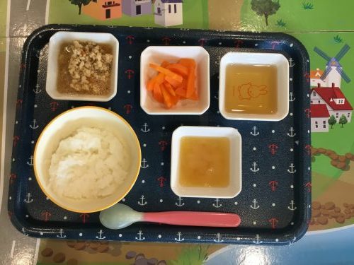 2018.10.18|給食ピックアップ 10月18日のお給食です 今日のお給食は「ご飯」「みそ汁」「チキンソテー」「野菜いため」「みかん」です 離乳食は「おかゆ」「みそ汁」「そぼろ煮」「人参スティック」です 前へ 次へ