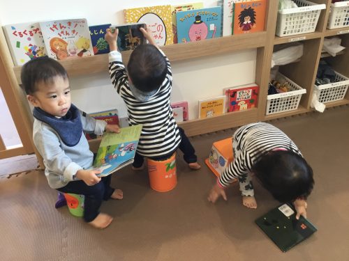 今日は何を読もうかな~というとみんなが自分の好きな大事な絵本を1冊持って我先にと先生の所に走ってきます。