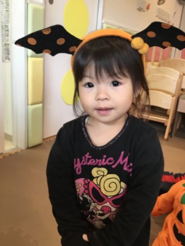 先日のハロウィンごっこでは黒いお手製のマントを付けて園の周りをパレードして歩きました。