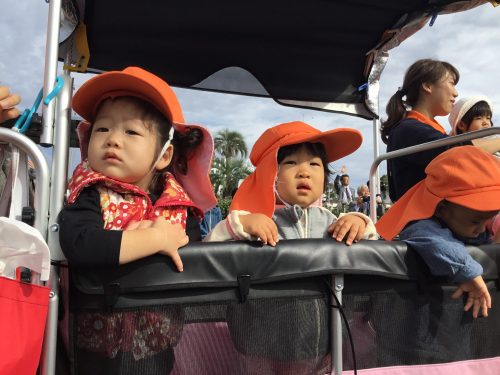 次の日は【海王丸の出航日】出航時間に合わせて出発!すると、「ぶ~ん」と次から次にと、幼稚園バスがサンライズキッズのお友だちを抜かしていきました。