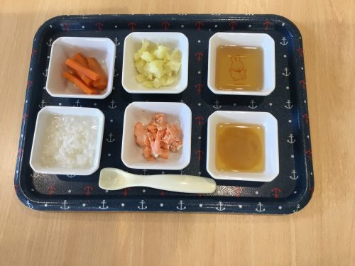 2018.12.11|給食ピックアップ 12月11日のお給食です 今日のお給食は「ご飯」「味噌汁」「鮭の西京焼き」「ベーコンポテト」「人参甘煮」「です 離乳食は「おかゆ」「みそ汁」「鮭のほぐし」「ゆでじゃがいも」「ゆで人参」です 前へ 次へ