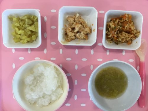 2019.01.09|給食ピックアップ 1月9日のお給食です 今日のお給食は「ご飯」「みそ汁」「鶏の照り焼き」「「スパゲッティ」「サツマイモ甘煮」です 離乳食は「おかゆ」「みそ汁」「そぼろ煮」「ゆで人参」「ゆでさつまいも」です 前へ 次へ