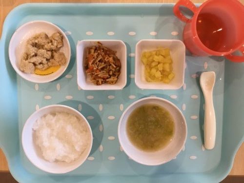 2019.01.23|給食ピックアップ 1月23日のお給食です 今日のお給食は「ご飯」「みそ汁」「照り焼きチキン」「スパゲッティソテー」「サツマイモ甘煮」です 離乳食は「ご飯」「みそ汁」「そぼろ煮」「スパゲッティソテー」「サツマイモ煮」です 前へ 次へ