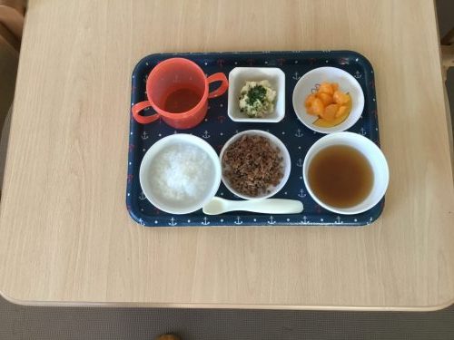 離乳食は「おかゆ」「みそ汁」「そぼろ煮」「ゆでじゃが芋」です
