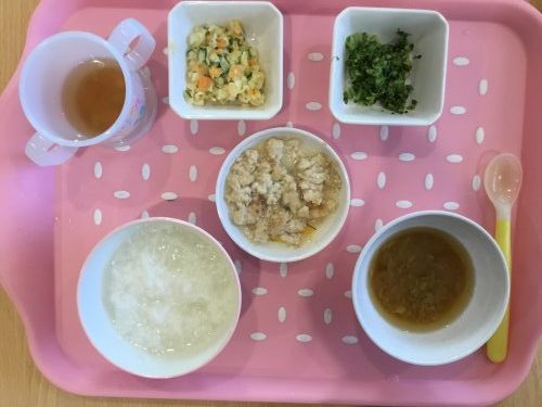 2019.02.15|給食ピックアップ 2月15日の給食 ・みそ汁 ごはん 中華風ローストチキン マカロニサラダ おかか和え ・離乳食 おかゆ みそ汁 チキンソテー 茹でブロッコリー マカロニサラダ 前へ 次へ
