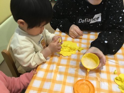 「今日は菜の花を作ってお部屋に飾ろうね」