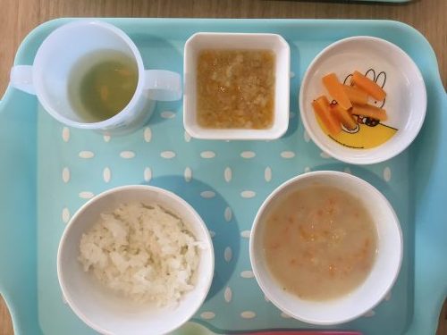 離乳食は「ご飯」「クリームシチュー」「おひたし」です