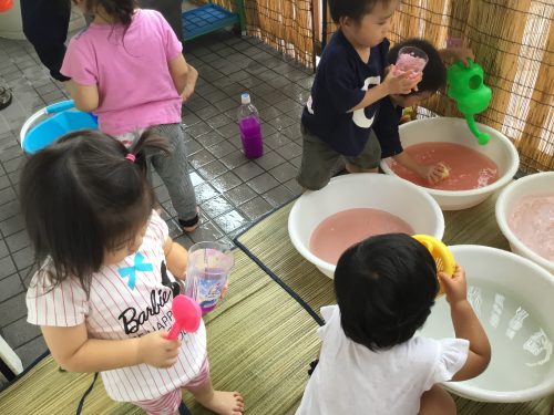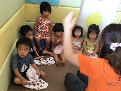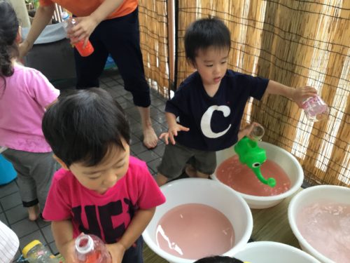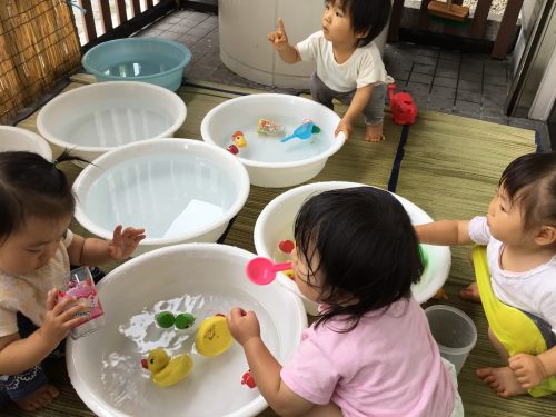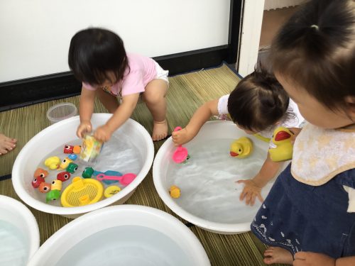 子ども達に「お水ちゃぷちゃぷしようか~」と声をかけると「ハーイ」と嬉しそうに手をあげ返事をしてくれますよ!
