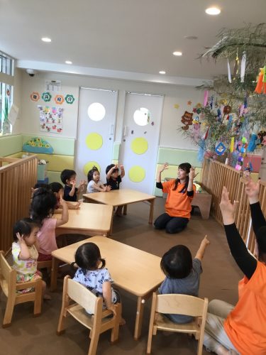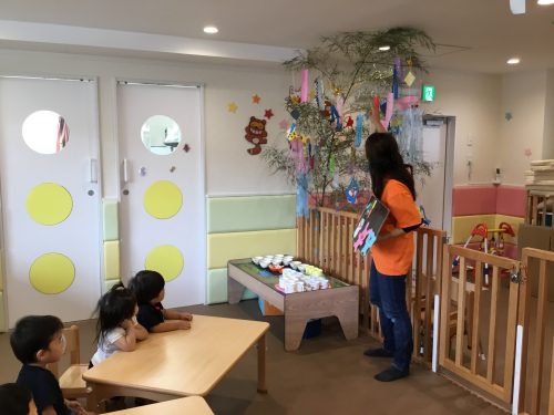 先生が「七夕って知ってるかな~?」と聞くと、子ども達は思い思いに答えてくれました。