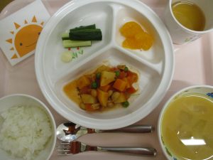 粥 味噌汁 ケチャップ煮 スティックきゅうり