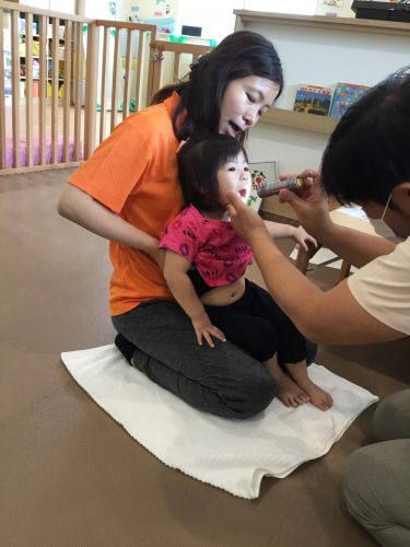 さて、そんなサンライズキッズ名古屋港園では、本日内科健診がありました?子どもたちは白衣を着たお医者さんの姿に表情を固まらせて緊張した様子…。