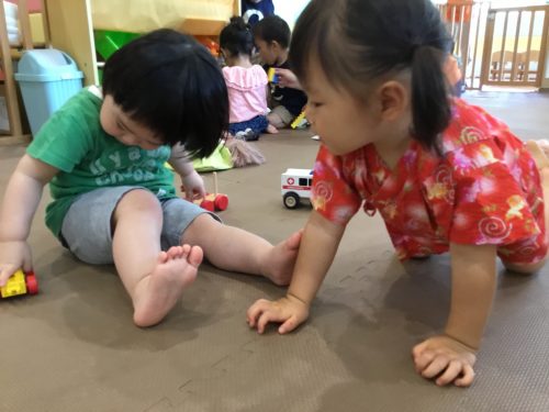 8月に入ってきた新入園児のお友だちも保育園に慣れてきて、笑顔で遊ぶ姿が増えてきまきしたよ!