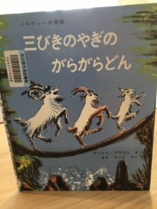 今週は”三匹のやぎのがらがらどん”の絵本を読んで表現遊びをしました。