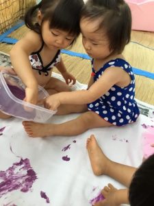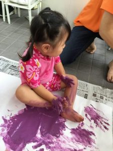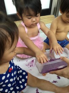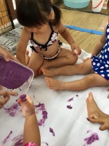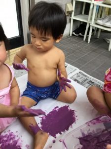 1歳児はフィンガーペインティングをしました!
