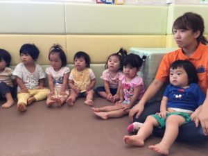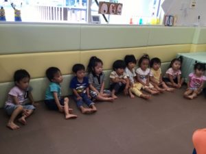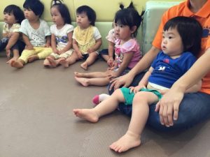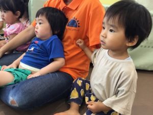 始まりの手遊びで、子ども達は何が始まるんだろう…と興味深々の様子。