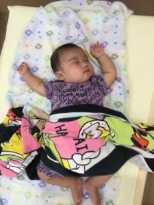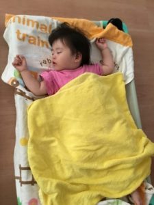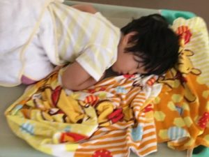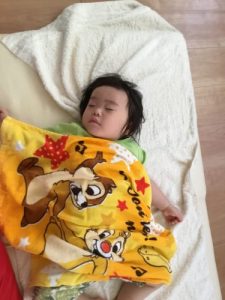 8月~入園したお友だち。入園当初はなかなか寝れず泣くこともあrimasitaga、今ではすっかり慣れて泣くこともほとんどなく、安心して眠っている0歳児もも組さん。