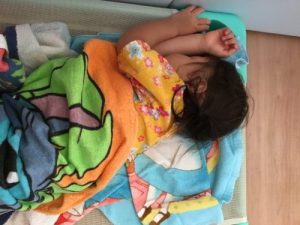 サンライズキッズ保育園名古屋港園では、2時間程度の午睡を設けることで発達を促し、午後の時間をより良いものに出来るよう環境を整えています。