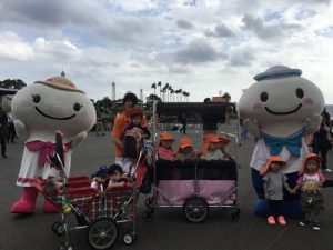 ポータンとミータンの人形もいてみんなで握手やタッチをした後に記念撮影です。