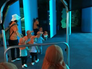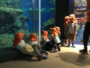 「海の生き物見に行くんだよ」「大きな船も来るんだよ~」と行く前にお話しすると目をキラキラさせながらやる気いっぱいで出発準備に取り組む子どもたちです。
