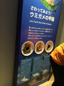 カメの水槽は、カメの顔を真正面から覗くことができ、「どんな顔してるー?」と聞くとじーっと見つめて顔の表情を確かめていました。