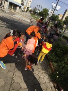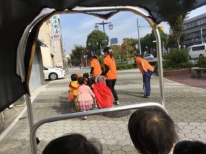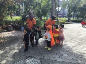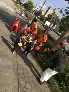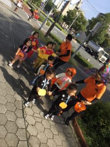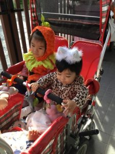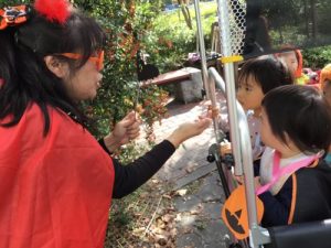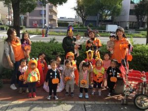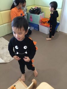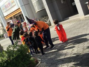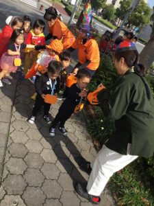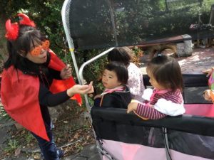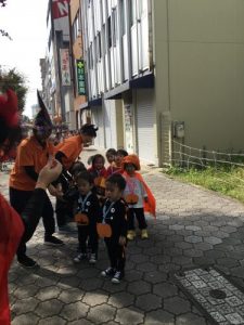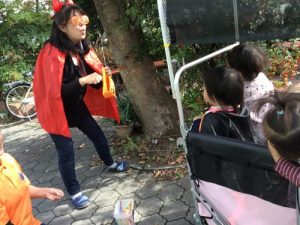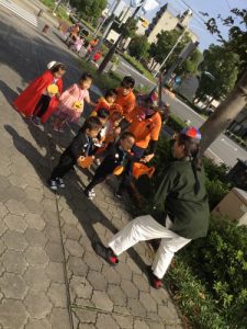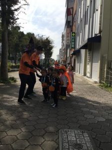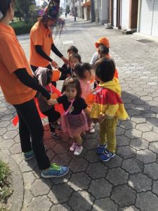 仮装した格好で、外に出かけ、怖さを言葉と動きで表現したことは、子どもたちにとって、よい機会となりました。