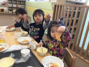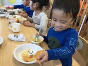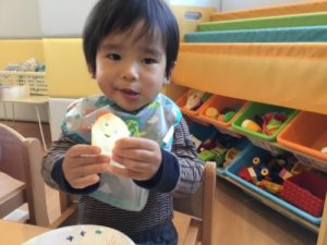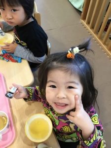 ちょっとびっくりしている様子の子ども達でしたが、カボチャの顔が完成するととっても嬉しそうにしていた子ども達でした!